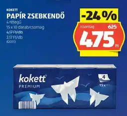 2ALDI Kokett Papír Zsebkendő ajánlatKokett Papír ZsebkendőALDI475,00 Ft02 január 202607 január 2026 Ajánlat megtekintése