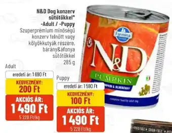 Hol lesz akcióban a(z) N&D Dog konzerv sütőtökkel Adult jövő héten?