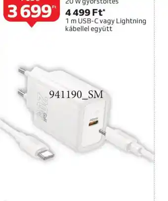 USB-C kimenet, 20 W gyorstöltés, 1 m USB-C vagy Lightning kábellel együtt