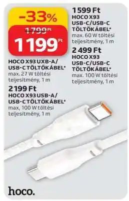 HOCO X93 USB-C/USB-C TÖLTŐKÁBEL ajánlat a Auchan-nál