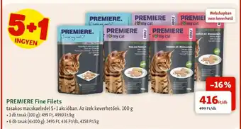 A(z) Fressnapf termékek széles választékát kínálja, a(z) Premiere fine filets tasakos macskaeledel-t leszámítva. Nézd meg a heti Fressnapf akciós újság ajánlatát, hogy a legjobb ajánlatokról és promóciókról ne maradj le. A(z) Premiere fine filets tasakos macskaeledel-t leszámítva több ajánlatot is találsz: Gourmet tasakos macskaeledel, többféle., Premiere meat menu konzerv macskaeledel, és Premiere meat menu konzerv macskaeledel.