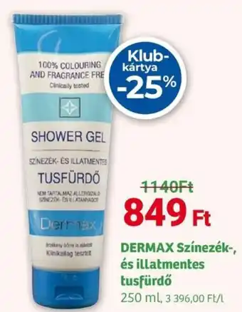 DERMAX Színezék-és illatmentes tusfürdő ajánlat a Herbaház-nál