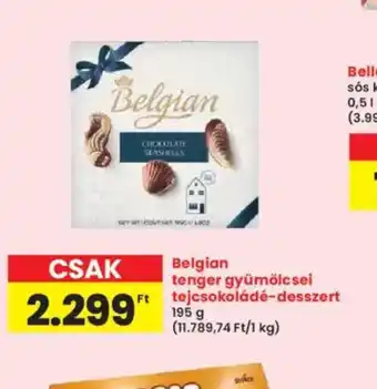 Ez az akciós ajánlat több különféle üzletben is elérhető, tekintsd meg az összes terméket, hogy a legjobb Belgian tenger gyümölcsei ajánlatban részesülj. Ha szeretnéd megtudni, más üzletekben ez a termék nagyobb leárazással vásárolható-e meg, nézd meg a(z) 'Szupermarket' kategóriát. Ezek az ajánlatok szintén érdekelhetnek: Belgian tenger gyümölcsei tejcsokoládé-desszert, ajánlat 2, és ajánlat 3.