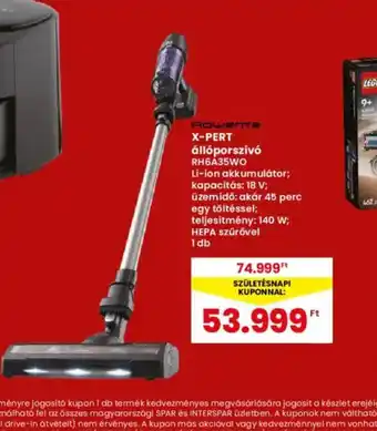 A(z) Interspar termékek széles választékát kínálja, a(z) Rowenta X-PERT állporszív-t leszámítva. Nézd meg a heti Interspar akciós újság ajánlatát, hogy a legjobb ajánlatokról és promóciókról ne maradj le. A(z) Rowenta X-PERT állporszív-t leszámítva több ajánlatot is találsz: ROWENTA RH6545WH RÚDPORSZÍVÓ, X-Shot Excel Micro kilövőkészlet, és Cata SK-6000 X kürtös páraelszívó.