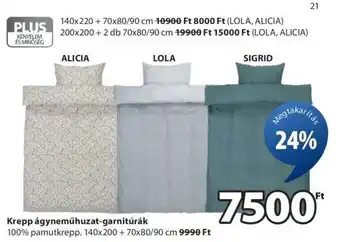 KREPP ÁGYNEMŰHUZAT-GARNITÚRÁK akcióban a(z) JYSK-nál