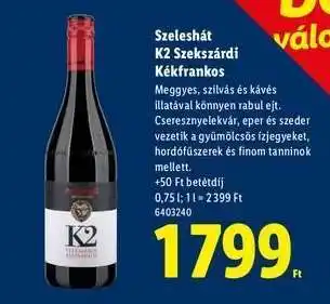 SZELESHÁT K2 Szekszárdi Kékfrankos kedvezmény a(z) Lidl-nál