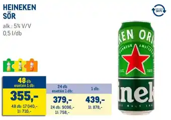 A Heineken sör ajánlat a 01. héten érvényes. Lejárt az akció? Ne aggódj, folyamatosan frissítjük az elérhető ajánlatokat. Kövesd a termékkategóriát, hogy elsőként értesülj, amikor a(z) Heineken sör újra akciós lesz a(z) Metro-nál.