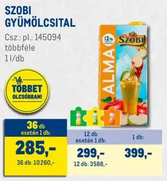 Nézd meg a legolcsóbb terméket minden ajánlat közül! Ha szeretnéd tudni, hogy a(z) Metro üzletben a legnagyobb-e a leértékelés Szobi gyümölcsital termékre, hasonlítsd össze a Témák oldalon, vagy más üzletekkel.