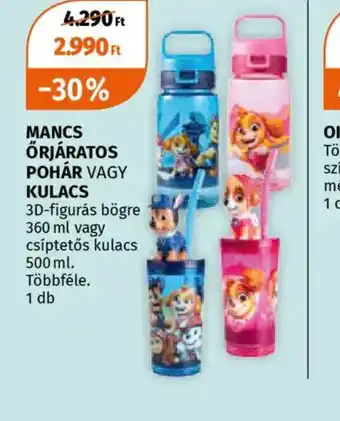 Az akciós MANCS ŐRJÁRATOS POHÁR/KULACS ára megtalálható az oldal tetején, az ajánlat időtartamával együtt. Az árat megnézheted a jelenlegi Müller akciós újság kínálatában, vagy a(z) Müller weboldalán. A promóciós ajánlatok biztosítanak arról, hogy a(z) Müller termékeit a legolcsóbb áron szerezhesd be.