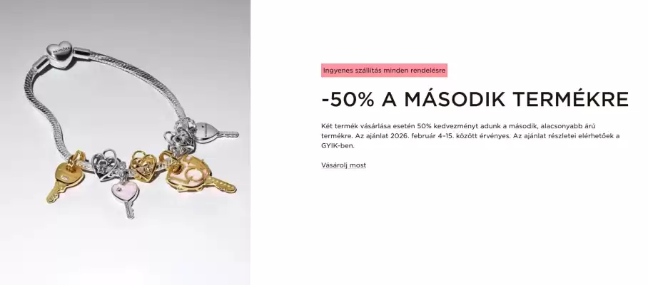 A(z) Pandora minden héten új Ékszerek akciós újságot ad ki Kecskemét városára vonatkozóan. Ezen az oldalon mindig megtalálod a legfrissebb <b>Pandora akciós újság</b> szórólapot, amely 04-02-2026 és 15-02-2026 között érvényes. Így elsőként értesülhetsz a helyi akciókról, és pontosan tudod, mikor válik elérhetővé az új akciós újság Kecskemét környékén.