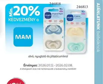 A(z) MAM játszcumi ajánlat 10-01-2026 és 08-02-2026 között érvényes. Ha már lejárt, megtekintheti a többi elérhető akciós lehetőséget. Kövesse a termékkategóriát, hogy értesítést kapjon, amint a(z) MAM játszcumi újra akciós lesz a Rossmann-nál.