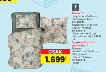 Ez a Ágyneműhuzat-garnitúra jelenleg érvényes ajánlatban van a Spar-nál. Az aktuális árak, az akció részletei és az érvényesség időtartama megtalálható ezen az oldalon. Nézze meg a további hasonló ajánlatokat is, hogy biztosan a legjobb döntést hozza meg.