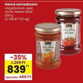 Az akciós Hamé extradzsem ára megtalálható az oldal tetején, az ajánlat időtartamával együtt. Az árat megnézheted a jelenlegi Spar akciós újság kínálatában, vagy a(z) Spar weboldalán. A promóciós ajánlatok biztosítanak arról, hogy a(z) Spar termékeit a legolcsóbb áron szerezhesd be.
