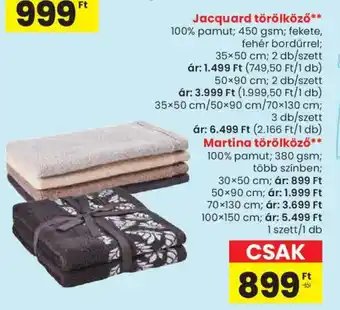 A Jacquard törölköző ajánlat a 09. héten érvényes. Lejárt az akció? Ne aggódj, folyamatosan frissítjük az elérhető ajánlatokat. Kövesd a termékkategóriát, hogy elsőként értesülj, amikor a(z) Jacquard törölköző újra akciós lesz a(z) Spar-nál.