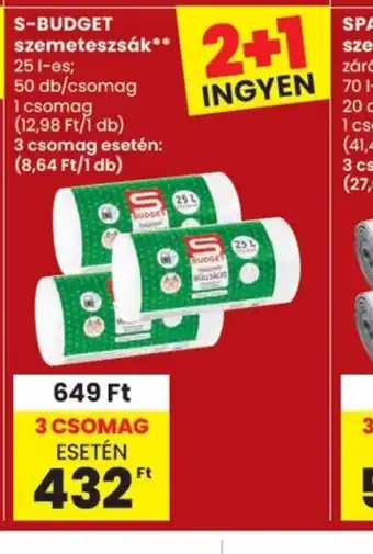 S-BUDGET szemeteszsák akciók és online ajánlatok a(z) Spar-tól