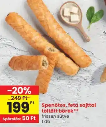 Az akciós Spentos-feta börek ára megtalálható az oldal tetején, az ajánlat időtartamával együtt. Az árat megnézheted a jelenlegi Spar akciós újság kínálatában, vagy a(z) Spar weboldalán. A promóciós ajánlatok biztosítanak arról, hogy a(z) Spar termékeit a legolcsóbb áron szerezhesd be.