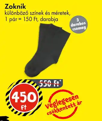 Hol lesz akcióban a(z) Zoknik különböző színek és méretek jövő héten?