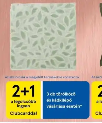Clubcarddal, 3 db törölköző és kádkilépő vásárlása esetén, az akci csak a megjelölt termékekre vonatkozik.